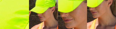 100% polyester. 4 panel. Low profile jockey style. Quick dry. Self colour mesh side panels. Black piping detail. Pre-curved peak. Fabric size adjuster with metal clip. Tear out label.