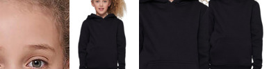 Inside brushed sweat fabric, hood and hem with drawstrings, ribbed cuffs at sleeve openings, kangaroo pocket.