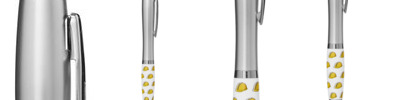 - Retractable curvy plastic barrel ballpoint pen with medical stock art grip featuring a policeman Emoticon