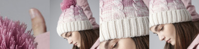 Cuffed design for optimal decoration. Heavyweight multi yarn cable knit design. Self-coloured pom pom.