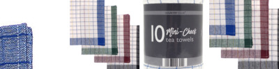Pack of 10 cotton/polyester tea towels. Durable and absorbent. Assorted colours.