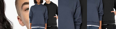 60% airlume combed ringspun cotton/40% polyester. Drop shoulder style. Two panel lined hood. Taped neck. Front pouch pocket. Ribbed cuffs and hem. Tear out label.