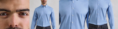 72% cotton/25% organic cotton/3% elastane. Mercerised cotton. Soft feel stretch fabric. Button down collar. Back yoke. Back darts. Single button cuffs with button on cuff gauntlet. Curved hem. Available in short sleeve PR386.