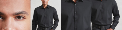 65% recycled polyester/35% cotton. Easy care fabric. Stiffened collar. Self colour buttons. Back yoke and darts. Two button adjustable cuffs with button on cuff gauntlet. Option for cuff links. Curved hem.