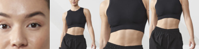 92% nylon/8% elastane interlock. Seamless knit. High waisted with deep waistband. Rear sculpting panel. Gusset panel. Tag free.