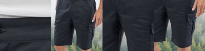 95% nylon/5% elastane. Stretchchecker fabric for comfort and movement. Durable and lightweight. Hidden elasticated waistband. Belt loops. Concealed zip fly with button over. Two side pockets. Rear patch pockets. Right leg pocket.
