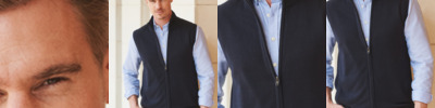 50% cotton/50% acrylic. Semi fashioned neckline. Ribbed collar, armholes and hem. Full length metal zip with brass metal zip pull. Covered placket. Two front welt pockets. Cut out label.