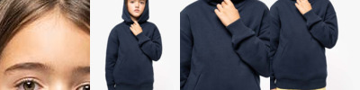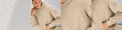 90% cotton/10% polyester. Classic fit. Brushed back fleece. Drop shoulder style. Double fabric hood. Taped neck. Front pouch pocket. 1x1 ribbed cuffs and hem. Tear out label.