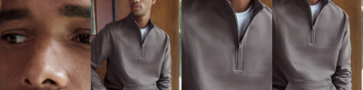 80% cotton/20% polyester. Piqué faced fabric. Drop shoulder style. Regular fit. Double layer cadet collar. Covered YKK zip neck. Woven taped neck and inner collar. Front pouch pocket. Ribbed cuffs and hem. Twin needle stitching. Tear out label.