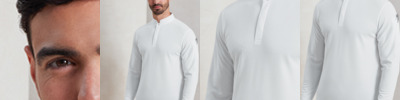 100% recycled polyester. Moisture wicking and breathable fabric. Mandarin collar stand. Press stud button tab on the neckband to hold an apron in place. Concealed placket with two press studs. Left sleeve pen pocket. Coolchecker® mesh back panel for airflow. Side vents. Ribbed knitted cuffs. Twin needle hem. Available in short sleeve PR646.